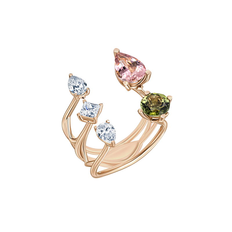 Турмалины огранки груша и круг. Бриллианты огранки груша и принцесса.