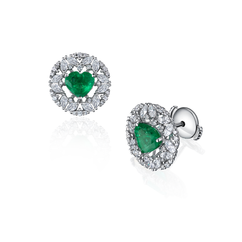 Изумруды огранки сердце. Бриллианты огранки маркиз и круглой огранки.
