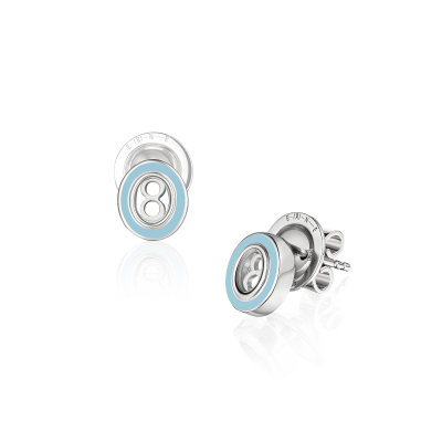 Концептуальные серьги-пусеты овальной формы из белого золота. Золотая цифра в центре защищена сапфировым стеклом и украшена ободком из цветной эмали. Цифра может выступать в роли талисмана. К серьгам-пусетам легко подобрать кольцо и колье того же дизайна и получить идеальный комплект украшений.