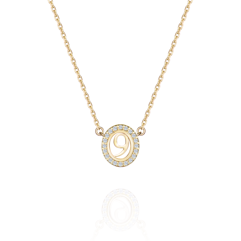 Элегантная подвеска на цепочке с тремя уровнями длины из желтого золота. Золотая цифра в центре подвески надежно укрыта сапфировым стеклом и обрамлена сияющей бриллиантовой россыпью. Роль цифры здесь условна и многозначна. Это может быть пароль, сигнал или символ, суть и смысл которого известны только вам.