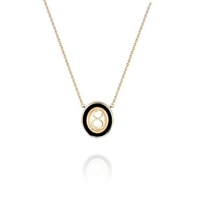 Концептуальная подвеска на цепочке с тремя уровнями длины выполнена из желтого золота. В центре подвески под сапфировым стеклом с ободком из цветной эмали располагается золотая цифра. Значение и смысл цифры могут быть недоступны посторонним, но исключительно важны для вас.