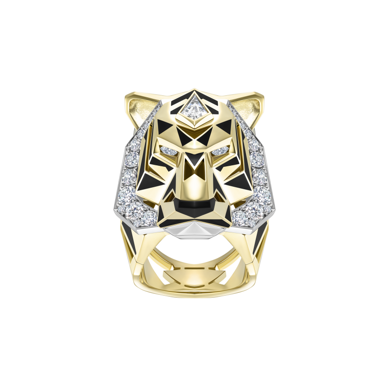 Кольцо с бриллиантами, агатом и эмалью