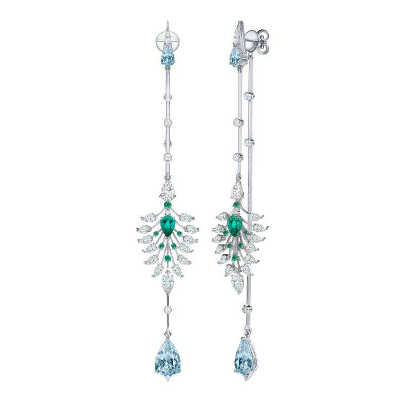 Серьги-пусеты с изумрудами, аквамаринами и бриллиантами