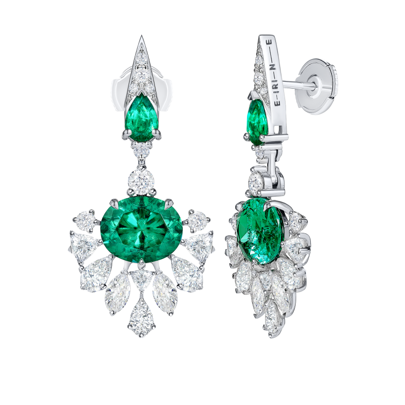 Изумруды огранки овал и груша. Бриллианты огранки груша, маркиз, триллион и круглой огранки.