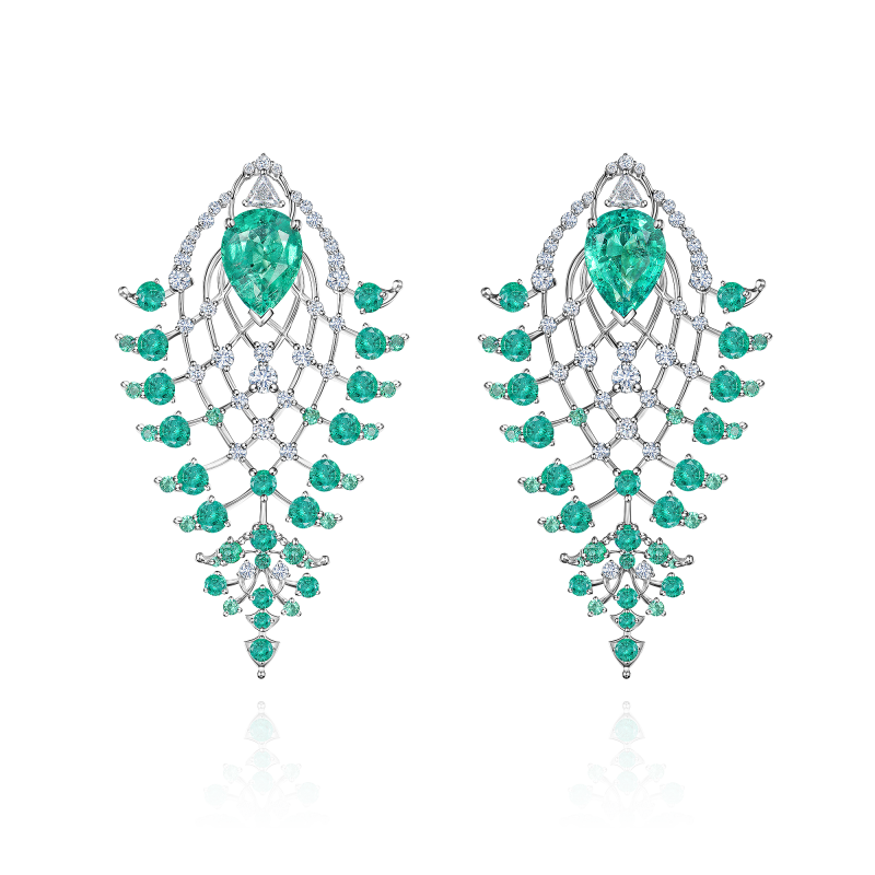 Изумруды огранки груша и круглой огранки. Бриллианты огранки триллион и круглой огранки.