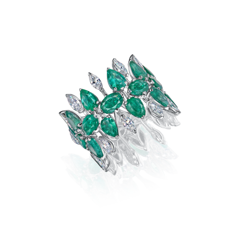Изумруды огранки груша и овал. Бриллианты огранки маркиз.