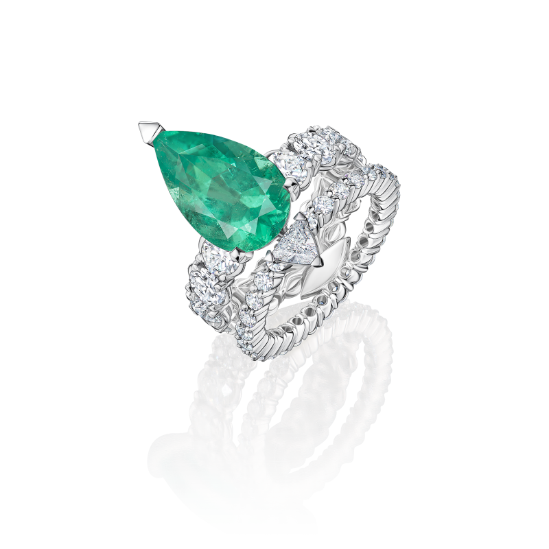 Изумруд огранки груша. Бриллианты огранки триллион и круглой огранки.