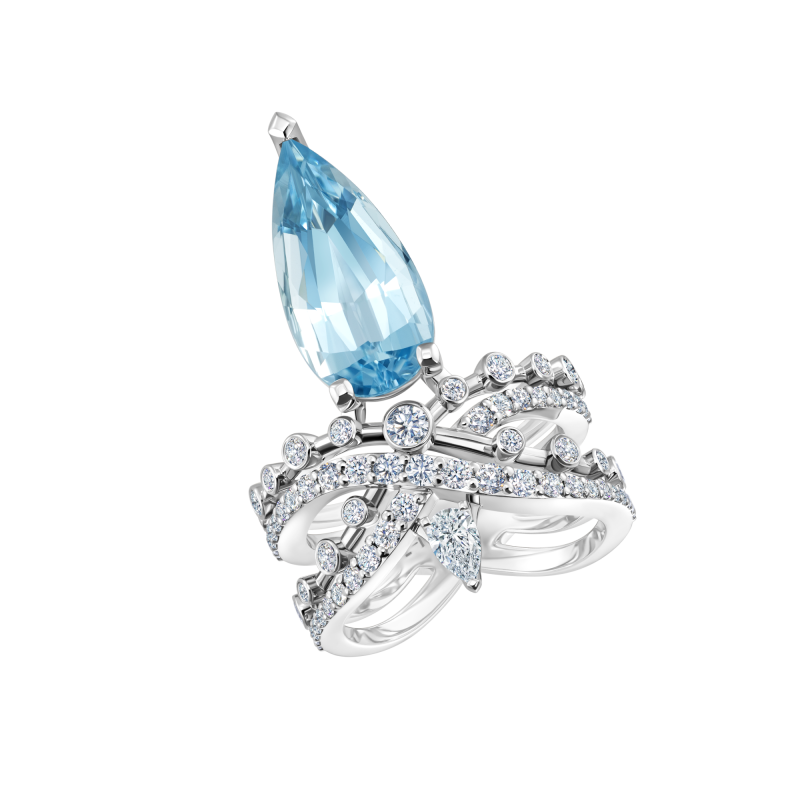 Аквамарин огранки груша. Бриллианты огранки груша и круглой огранки.