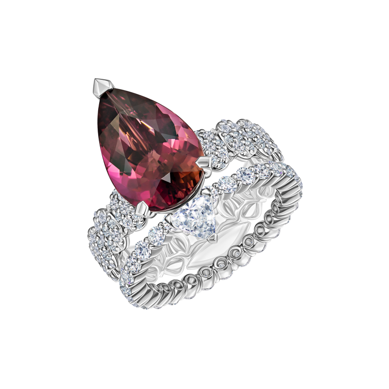 Родолит огранки груша. Бриллианты огранки триллион и круглой огранки.