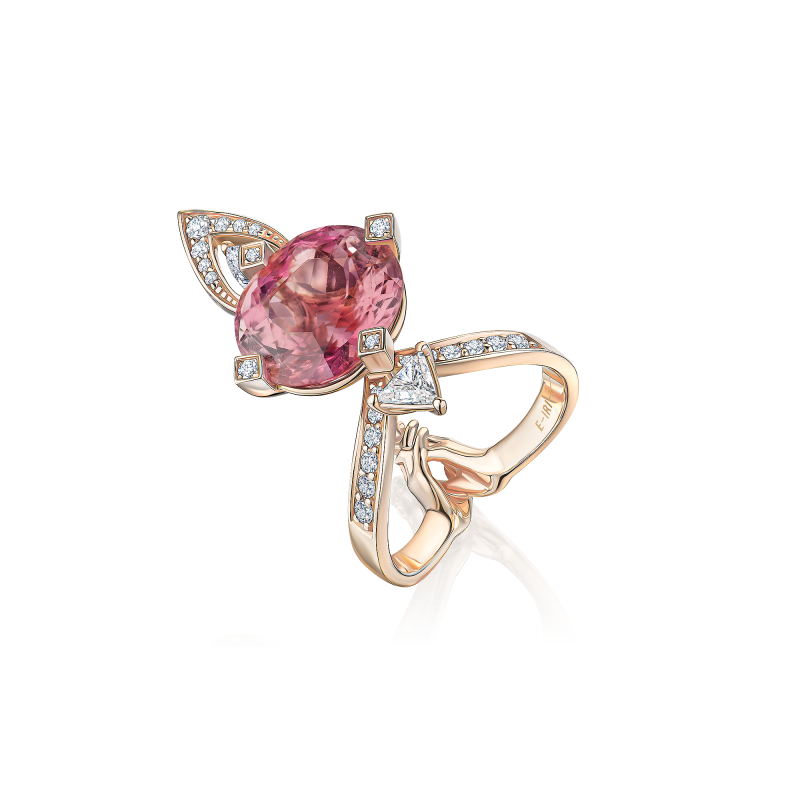 Турмалин огранки овал. Бриллианты огранки груша, триллион и круглой огранки.