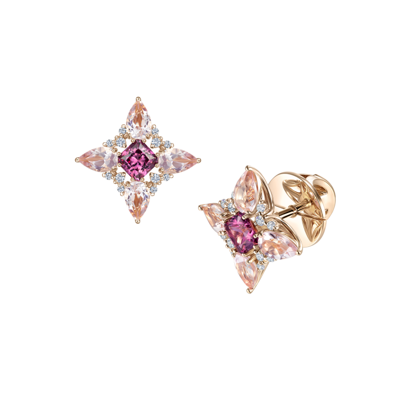 Серьги-пусеты с родолитами, морганитами и бриллиантами