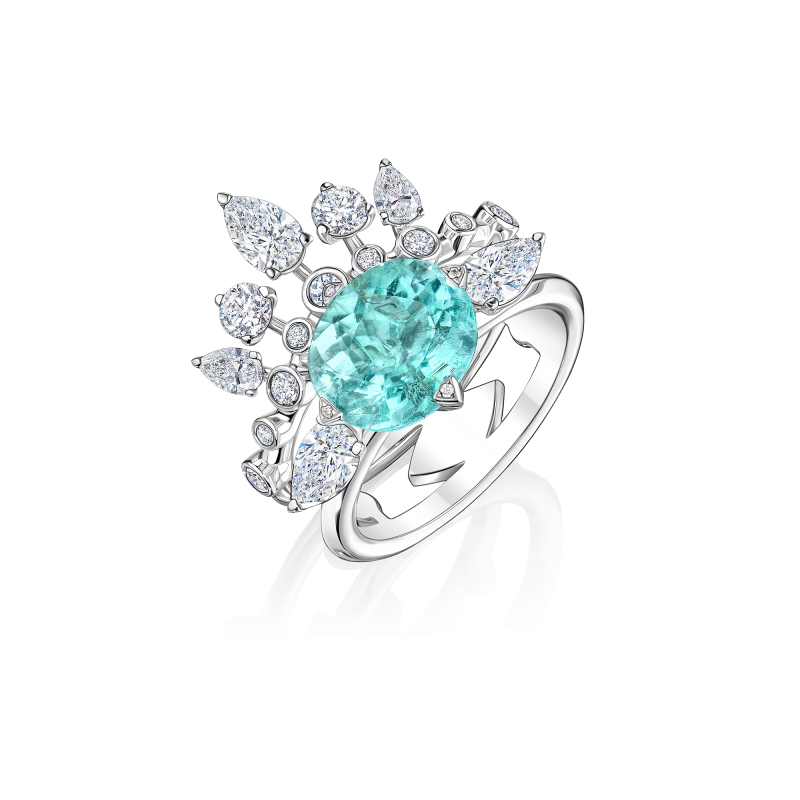 Турмалин Параиба огранки овал. Бриллианты огранки груша и круглой огранки.