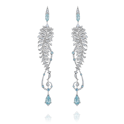 Аквамарины огранки груша, маркиз и круглой огранки. Бриллианты круглой огранки.