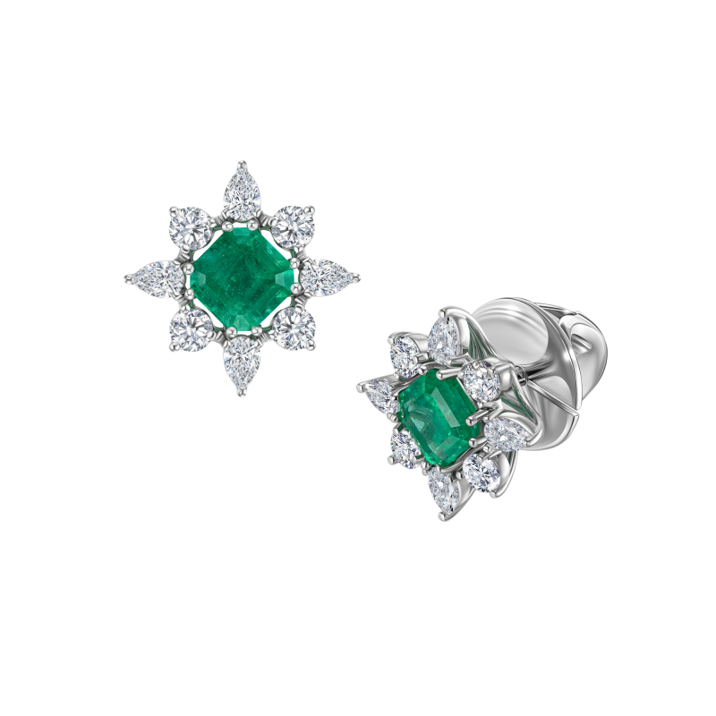 Серьги-пусеты с изумрудами и бриллиантами