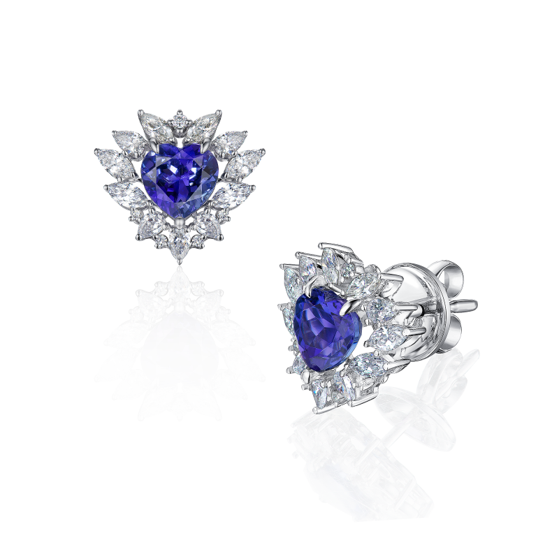 Танзаниты огранки сердце. Бриллианты огранки груша, маркиз и круглой огранки.