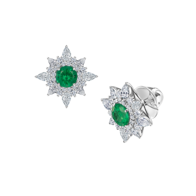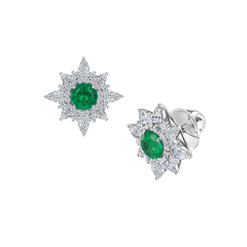 Серьги-пусеты с изумрудами и бриллиантами
