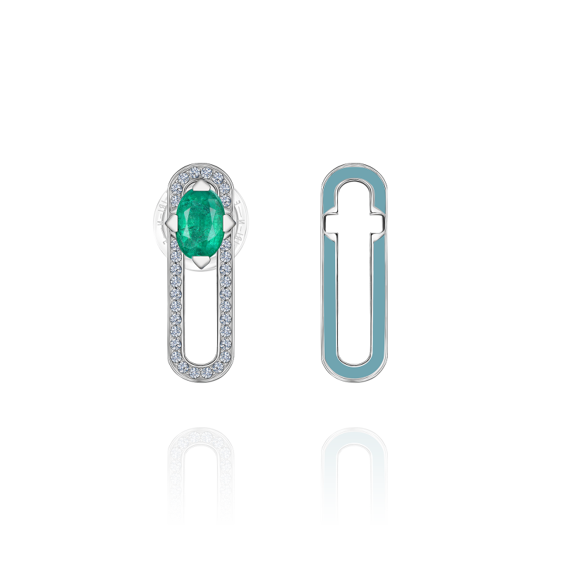 Серьга-пусета с изумрудом, бриллиантами и эмалью