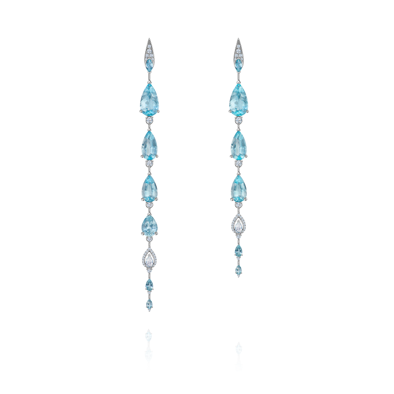 Аквамарины огранки груша и маркиз. Бриллианты огранки груша и круглой огранки.
