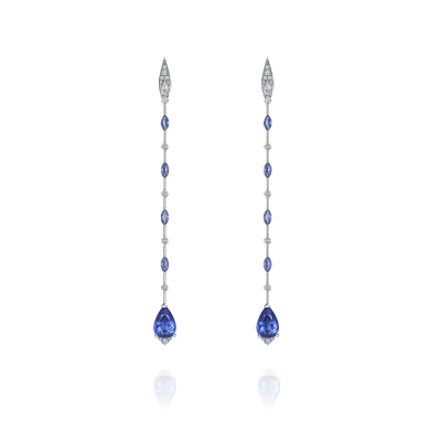 Танзаниты огранки груша и маркиз. Бриллианты огранки груша и круглой огранки.