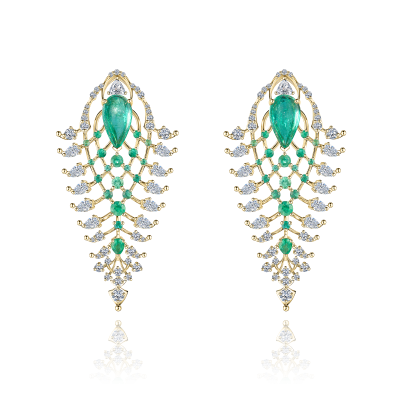 Изумруды огранки груша и круглой огранки. Бриллианты огранки груша, триллион и круглой огранки.