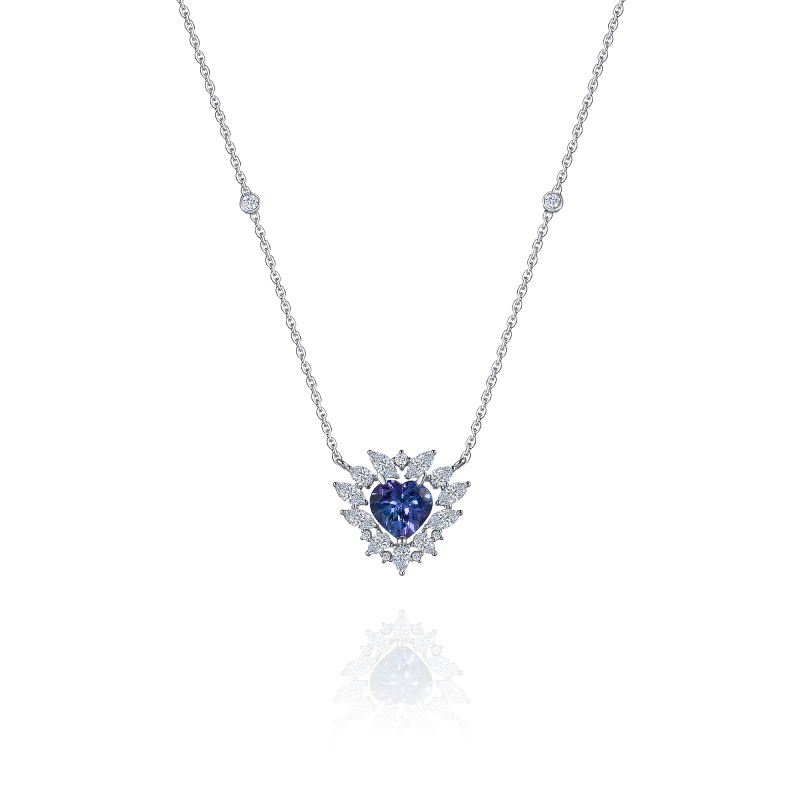 Танзанит огранки сердце. Бриллианты огранки груша, маркиз и круглой огранки.
