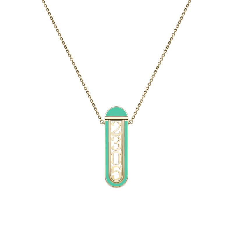 Капсула из желтого золота и сапфирового стекла, обрамленная золотым ободком с цветной эмалью, прикреплена к цепочке с тремя уровнями длины. В капсулу можно одновременно поместить 4 сменные цифры из золота, которые служат символом чего-то важного и особенного. Это могут быть даты, связанные с определенными событиями или традициями вашей семьи, с обстоятельствами, изменившими течение вашей жизни. В набор входит фирменный пинцет и 10 золотых цифр от 0 до 9, которые самостоятельно можно легко менять в капсуле.