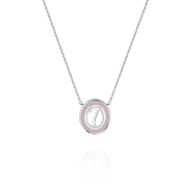 Концептуальная подвеска на цепочке с тремя уровнями длины выполнена из белого золота. В центре подвески под сапфировым стеклом с ободком из цветной эмали располагается золотая цифра. Значение и смысл цифры могут быть недоступны посторонним, но исключительно важны для вас.
