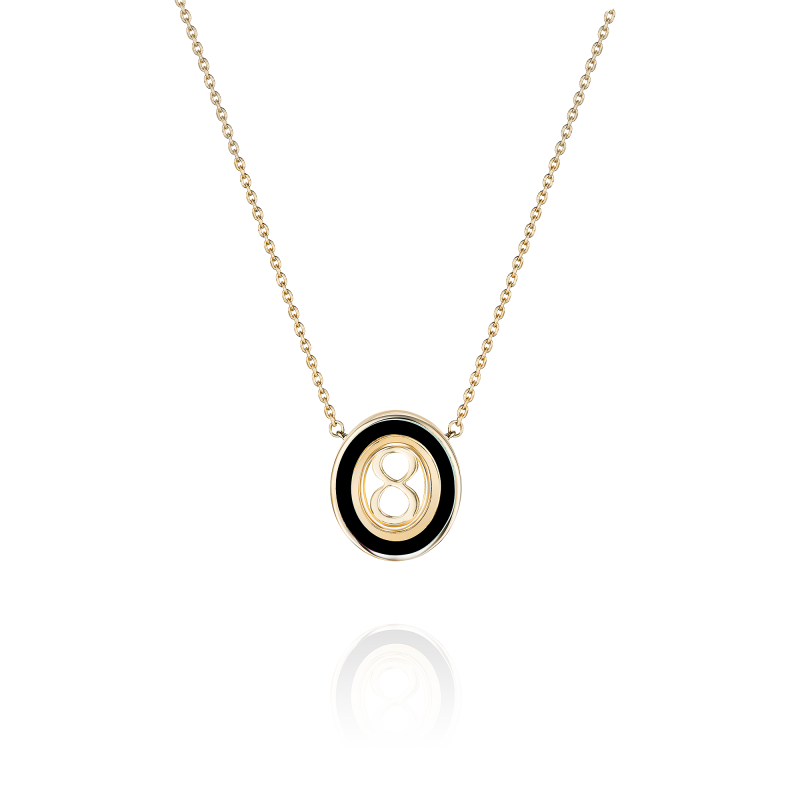 Концептуальная подвеска на цепочке с тремя уровнями длины выполнена из желтого золота. В центре подвески под сапфировым стеклом с ободком из цветной эмали располагается золотая цифра. Значение и смысл цифры могут быть недоступны посторонним, но исключительно важны для вас.
