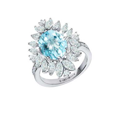 Аквамарин огранки овал. Бриллианты огранки груша, маркиз, триллион и круглой огранки.
