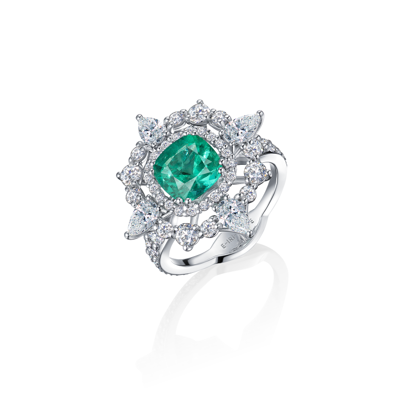 Изумруд огранки антик. Бриллианты огранки груша и круглой огранки.