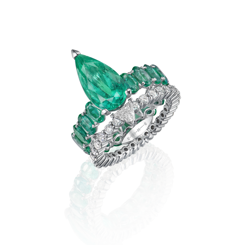 Изумруды огранки груша и овал. Бриллианты огранки триллион и круглой огранки.