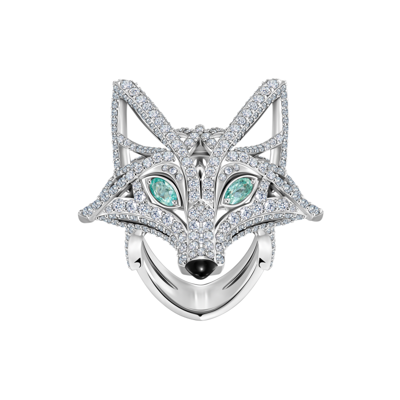 Кольцо с турмалинами параиба, бриллиантами и агатом