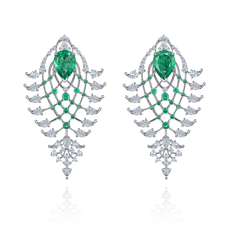 Изумруды огранки груша и круглой огранки. Бриллианты огранки груша, триллион и круглой огранки.