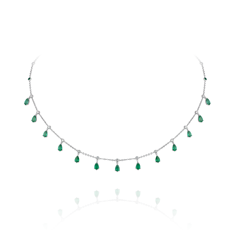 Изумруды огранки груша и круглой огранки. Бриллианты круглой огранки.