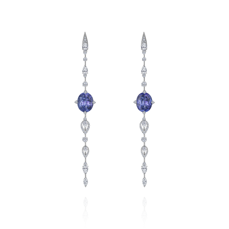 Танзаниты огранки овал. Бриллианты огранки груша, маркиз и круглой огранки.