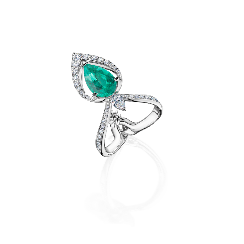 Изумруд огранки груша. Бриллианты огранки груша и круглой огранки.