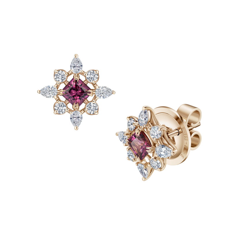 Серьги-пусеты с родолитами и бриллиантами