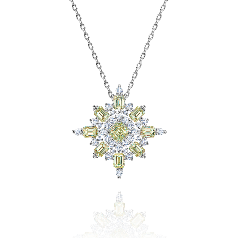 Бриллианты изумрудной и круглой огранки.
