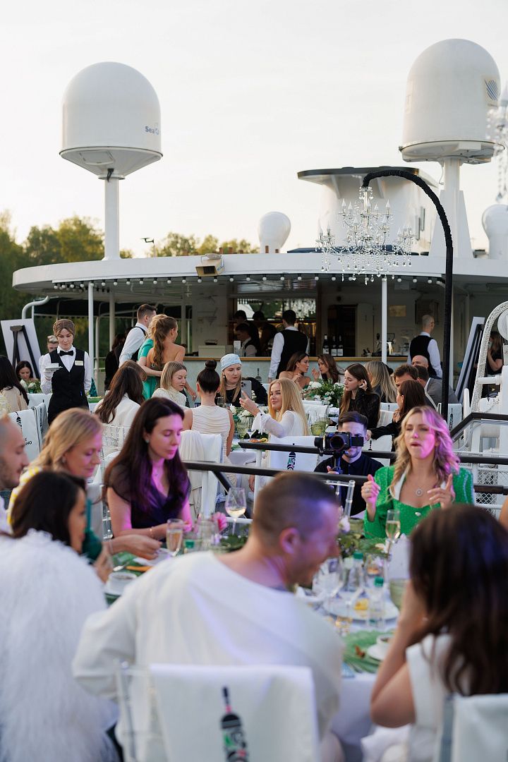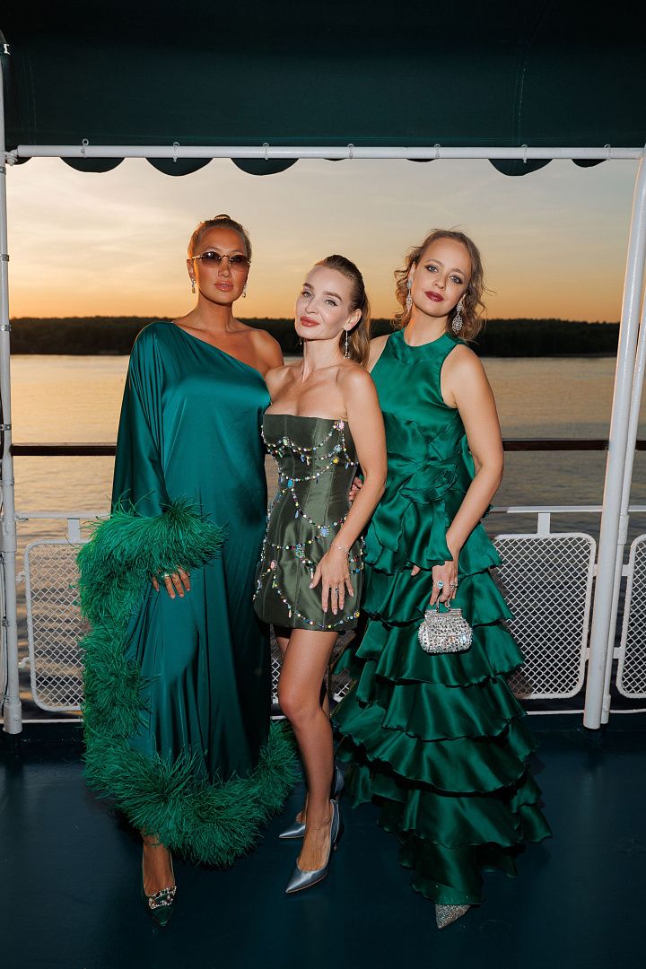 В эти выходные Ювелирный дом EIRINE при поддержке бренда одежды DV собрали друзей на роскошном круизе под девизом ART DE VIVRE. Торжественный гала ужин на солнечной палубе корабля Volga Dream проходил в сопровождении главных модниц столицы — Ирины Шамиловой, Дарьи Васильевой, Дарьи Михалковой, Наты Чигиринской, Татьяны Сабуренковой, Миланы Пич, Полины Салионовой, Кристины Левиевой, Алины Буре и других. Все герои вечера выдержали заявленный дресс-код — белые и изумрудные акценты в образах превосходно сочетались с сиянием бриллиантов.