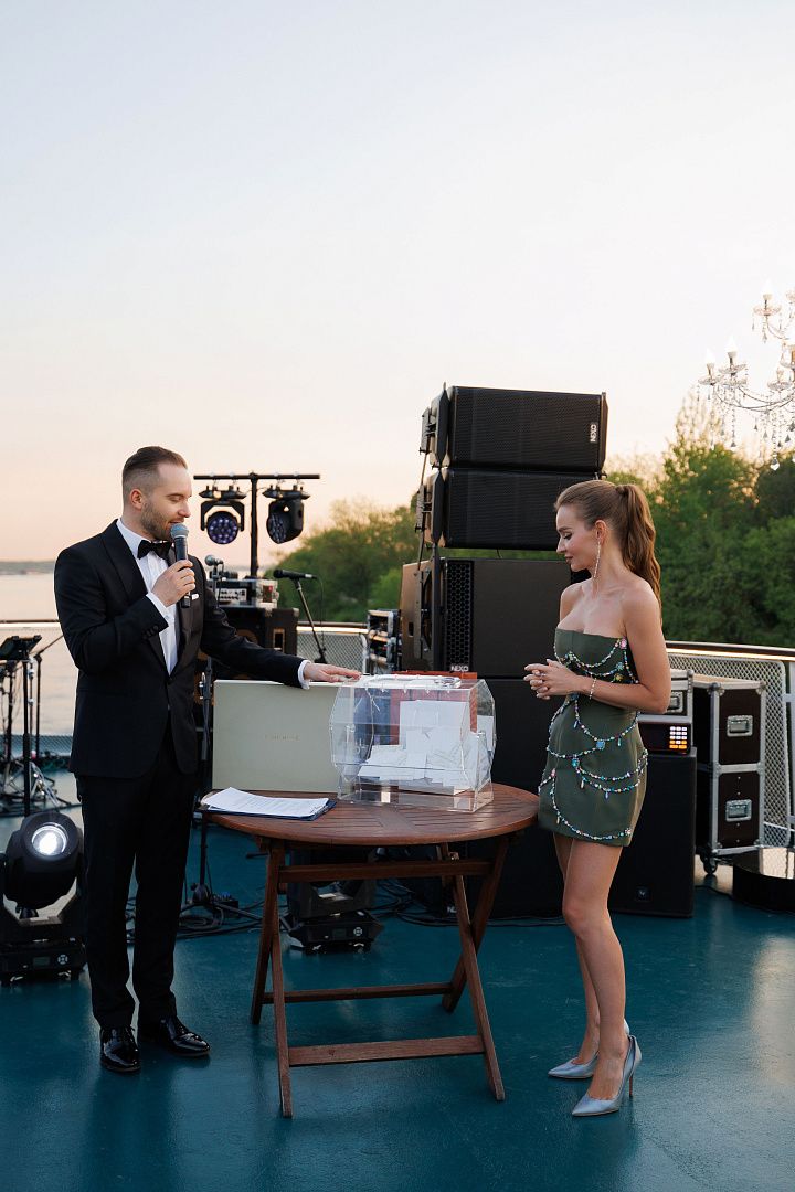 Гости отправились в двухдневное путешествие с Северного речного вокзала, где их приветствовал духовой оркестр и красная ковровая дорожка. Приветственный коктейль круиза проходил в лаундж-зоне корабля и сопровождался аккомпанементом розе от Simple и модной презентацией от международного бренда DV, дизайнером которого является талантливая Дарья Васильева.