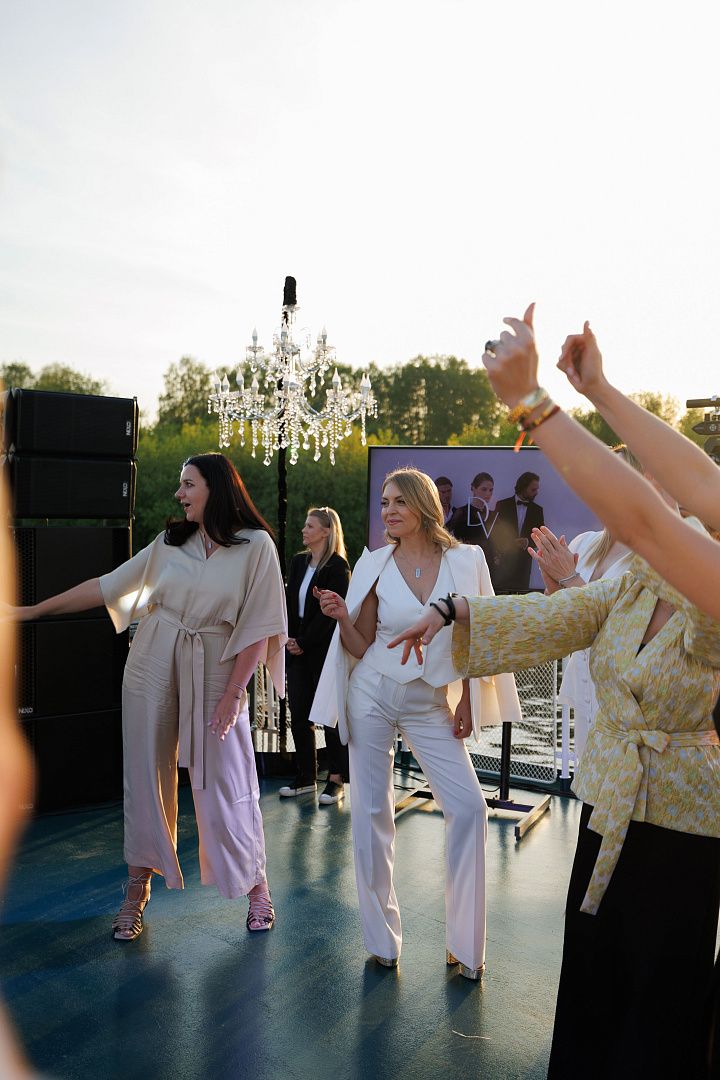Открывала гала-ужин по красивой традиции идеолог круиза - Ирина Шамилова, основатель Ювелирного дома EIRINE. За настроение на танцполе отвечали известный российский танцор Михаил Щепкин и талантливые ребята из группы «Четверо». Танцевали на палубе все без исключения, а самые смелые подпевали в микрофон артистам любимые песни. К слову, музыка на круизе не стихала до глубокой ночи, гости с большим удовольствием проявляли свои вокальные таланты: роскошные голоса Дарьи Михалковой, Полины Салионовой, Наты Чигиринской, Анастасии Зыковой заставляли гостей ни на минуту не покидать танцпол. На корабле стало тише только к середине ночи, когда часть гостей разошлись по каютам. Самые же стойкие остались встречать невероятной красоты рассвет, укутавшись в пледы, пока круизный корабль Volga Dream шел обратно в Москву.