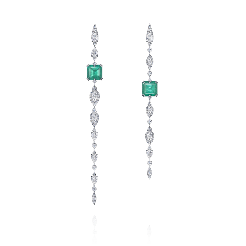 Изумруды изумрудной огранки. Бриллианты огранки груша и круглой огранки.