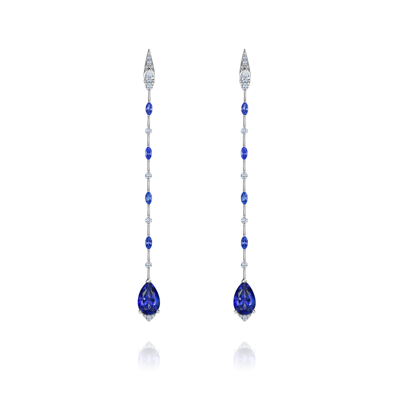 Танзаниты огранки груша и маркиз. Бриллианты огранки груша и круглой огранки.