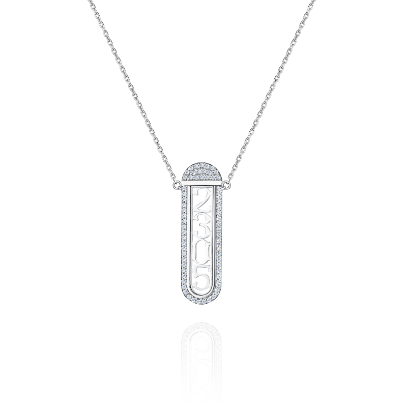 Капсула из белого золота и сапфирового стекла, украшенная россыпью сияющих бриллиантов, закреплена на цепочке с тремя уровнями длины. В капсулу можно одновременно поместить 4 золотые сменные цифры, которые символизируют для вас нечто важное – даты или события, имеющие особое значение или сакральный смысл.