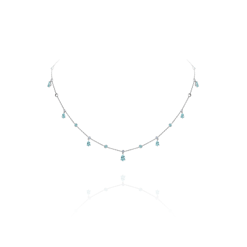 Аквамарины огранки груша и круглой огранки. Бриллианты круглой огранки.