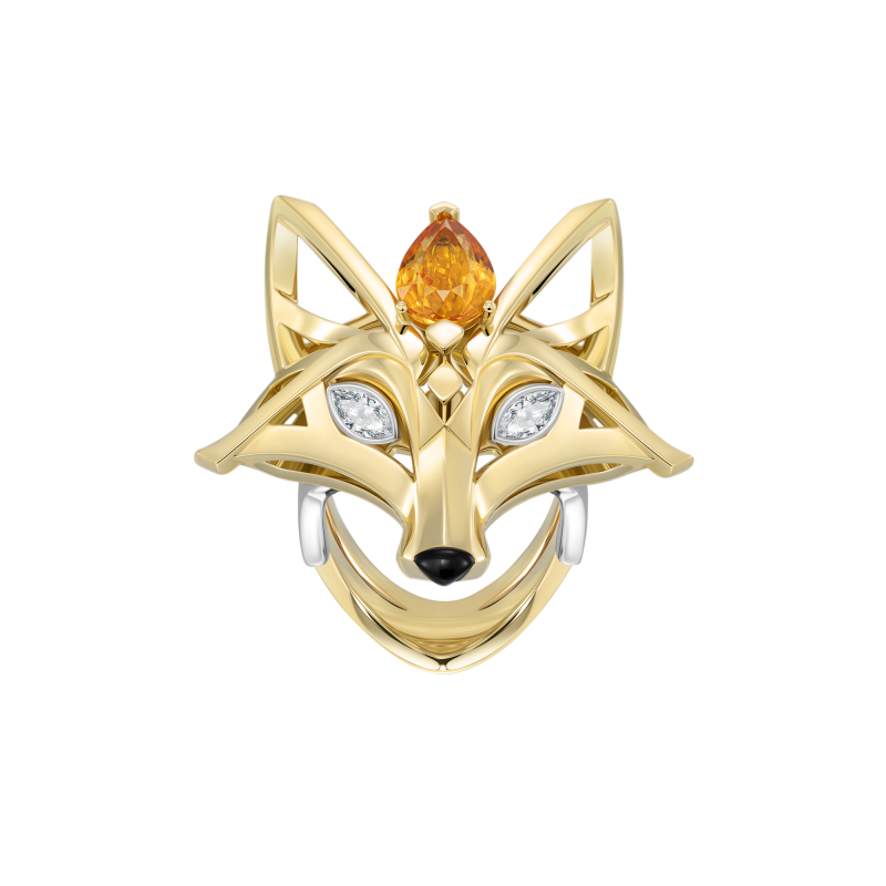 Кольцо с гранатом спессартин, бриллиантами и агатом