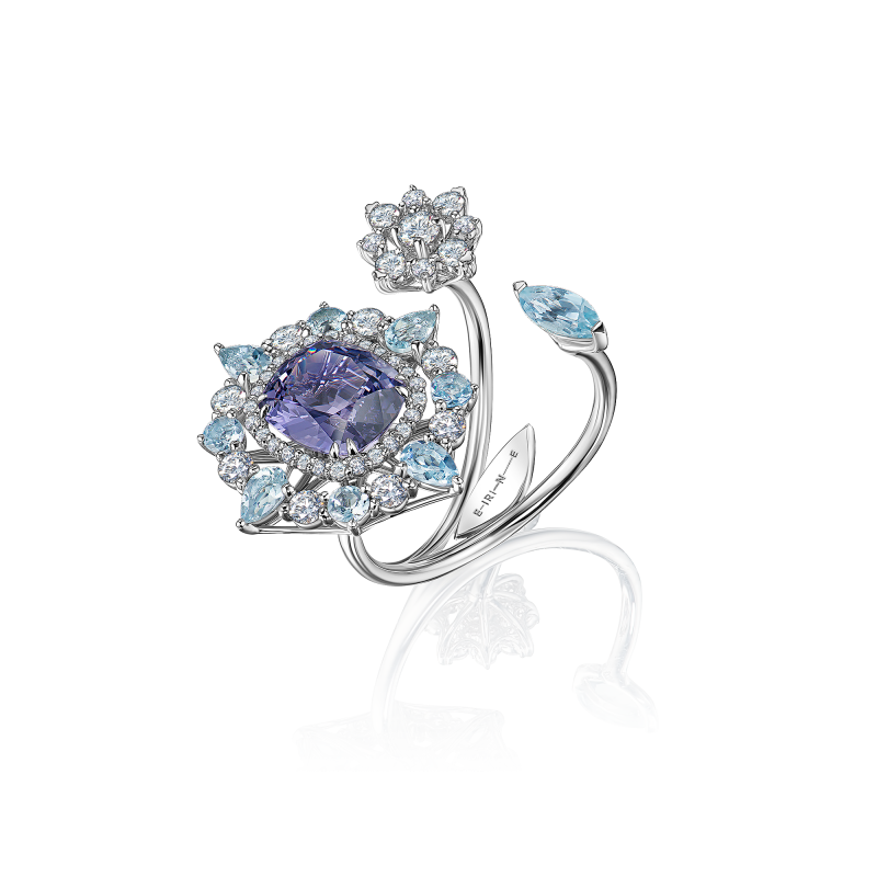 Кольцо с танзанитом, аквамаринами и бриллиантами