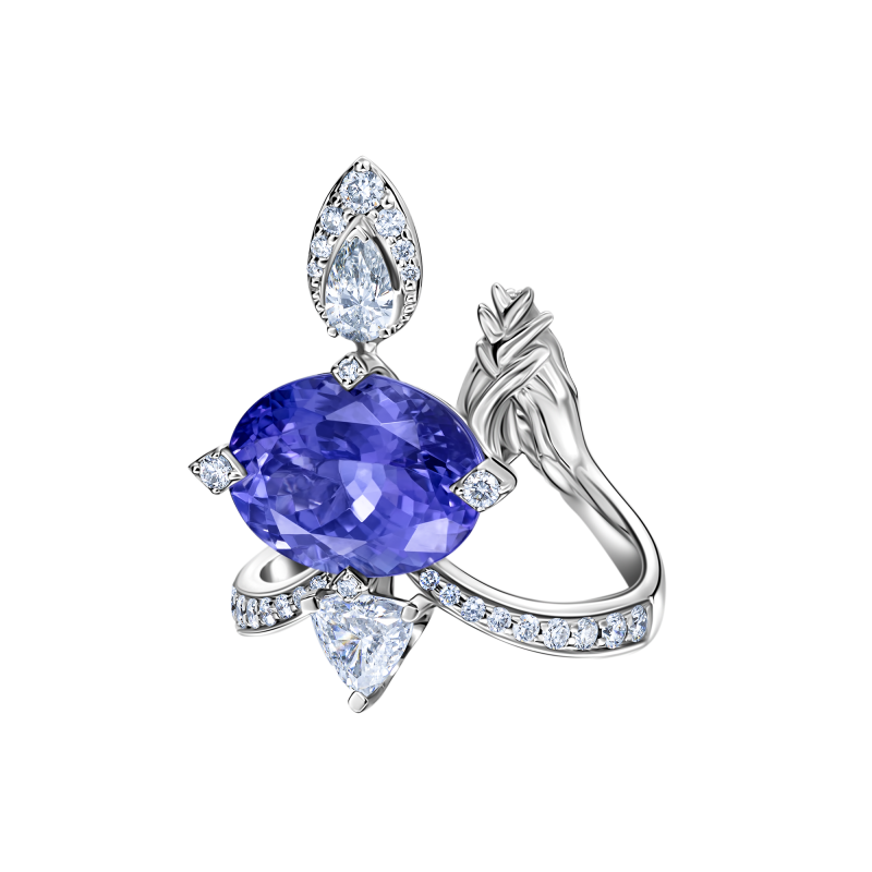 Танзанит огранки овал. Бриллианты огранки груша, триллион и круглой огранки.
