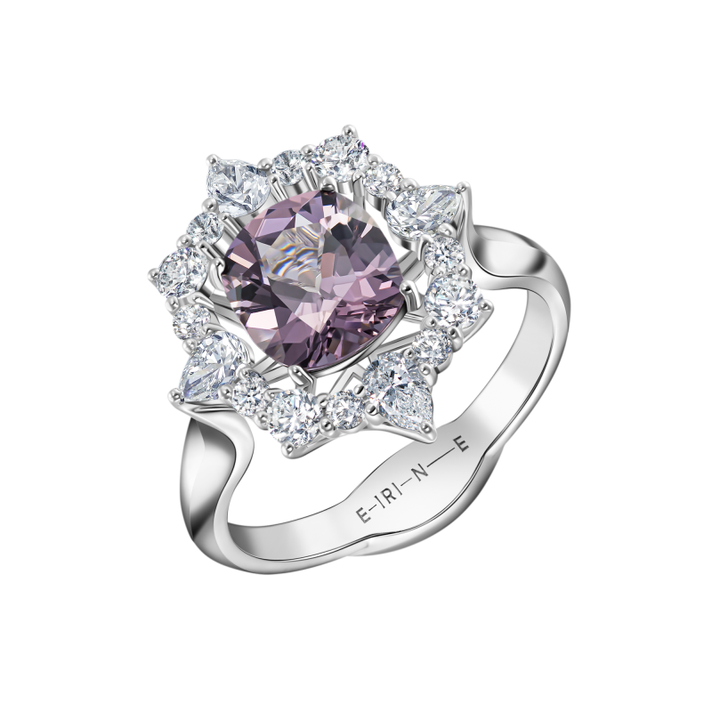Шпинель огранки антик. Бриллианты огранки груша и круглой огранки.