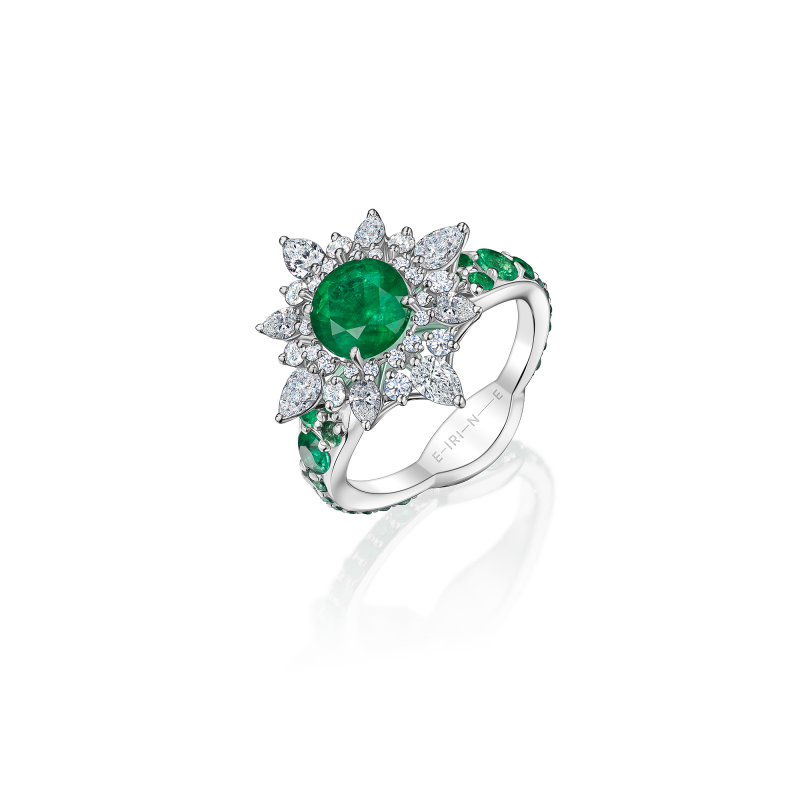 Кольцо с изумрудами и бриллиантами